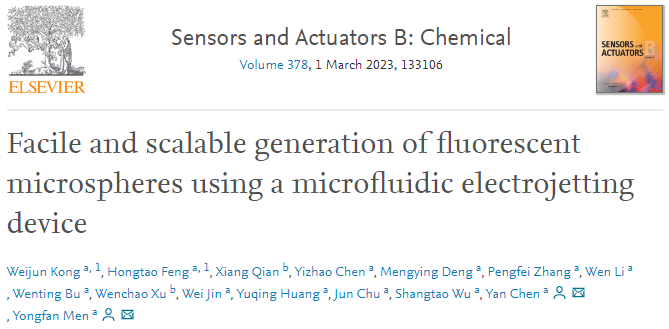 近日,中国科学院深圳先进技术研究院医工所的门涌帆副研究员团队和陈艳研究员团队,在国际学术期刊Sensors and Actuators B:Chemical(IF=9.221)上发表了题为“Facile and scalable generation of fluorescent microspheres using a microfluidic electrojetting device”的文章,报...