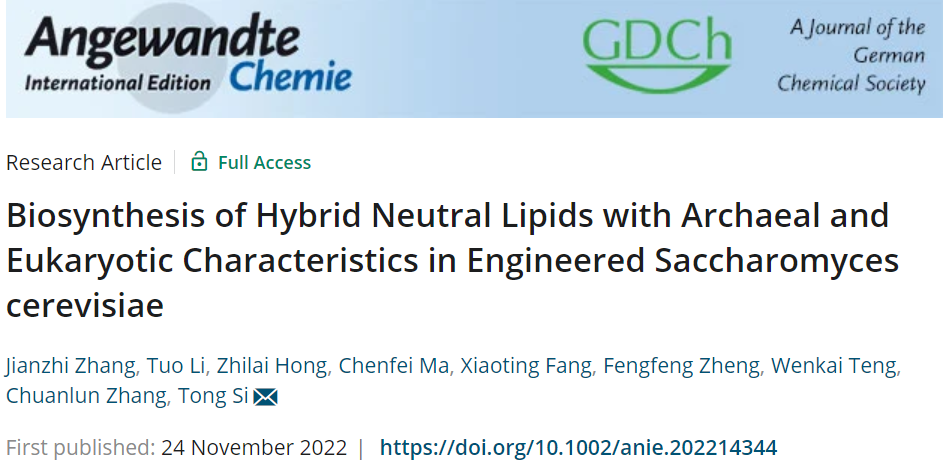 11月24日,中国科学院深圳先进技术研究院司同课题组与南方科技大学张传伦教授课题组合作,在国际学术期刊Angewandte Chemie International Edition发表研究论文“Biosynthesis of Hybrid Neutral Lipids with Archaeal and Eukaryotic Characteristics in Engineered Saccharomyces cerev...