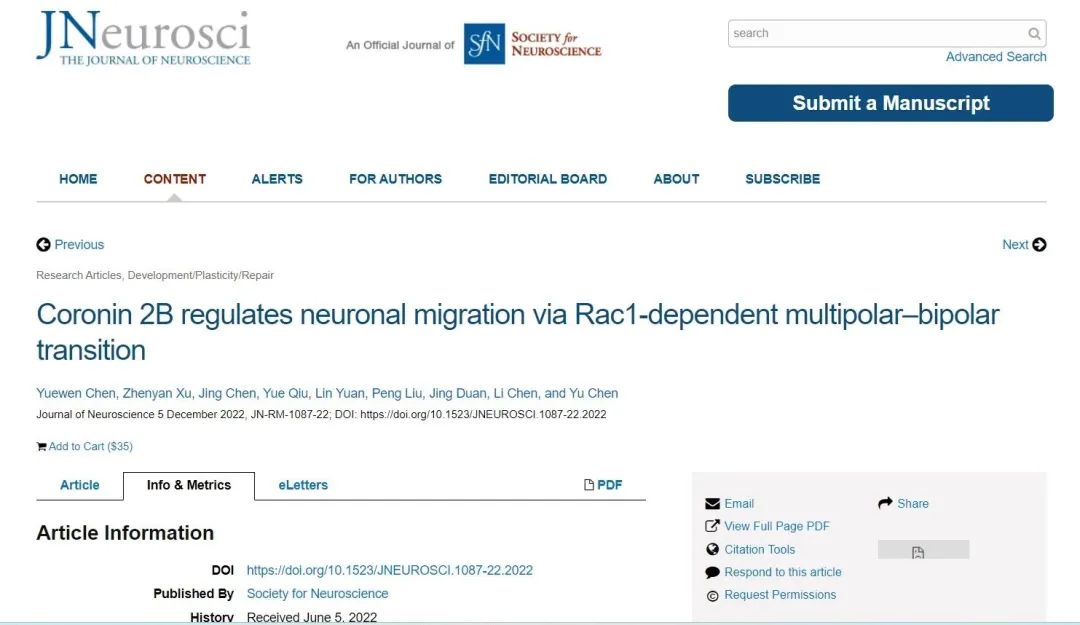 Journal of Neuroscience丨中科院深圳先进院陈宇/陈岳文团队发现皮层发育过程中调控神经元迁移的关键分子机理