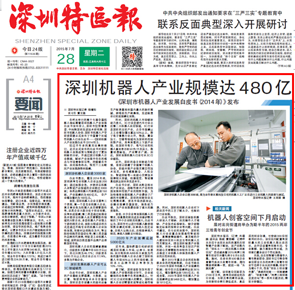 《深圳特区报》:深圳机器人产业规模达480亿