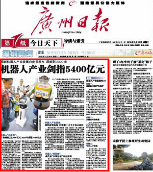 《广州日报》:深圳机器人产业发展白皮书发布 深圳到2020年机器人产业剑指5400亿元