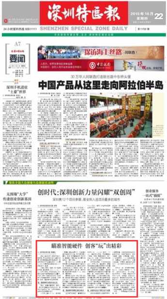 《深圳特区报》:瞄准智能硬件 创客“玩”出精彩