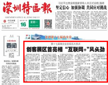 《深圳特区报》:创客展区首亮相 “互联网+”风头劲