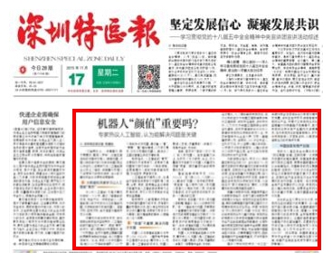 《深圳特区报》:机器人“颜值”重要吗?专家热议人工智能,认为能解决问题是关键