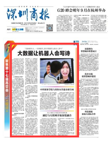 《深圳商报》:“双眸剪秋水,一手弹春风,歌尽琵琶怨,醉来入梦中”大数据让机器人会写诗