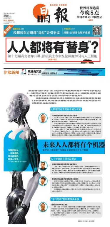 《晶报》:人人都将有“替身”?第十七届高交会昨开幕,顶级院士专家纵论深度学习与人工智能