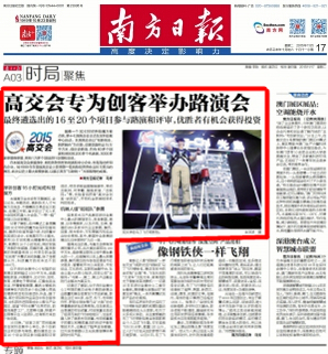 《南方日报》:高交会专为创客举办路演会最终遴选出的16至20个项目参与路演和评审,优胜者有机会获得投资