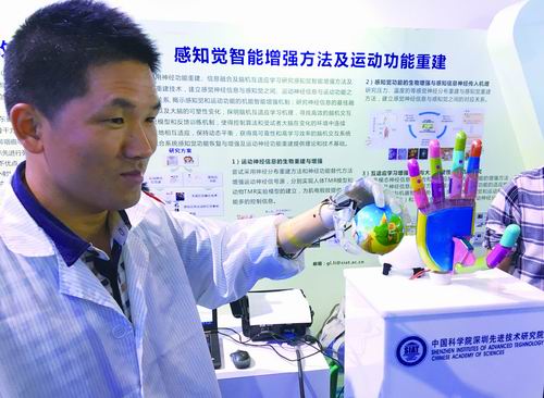 由中科院深圳先进技术研究院全新自主研发的智能假肢,相较于传统假肢重量更轻便,更适应于肢体缺陷人士佩戴使用,能够实现基本的抓取、伸张等日常动作,实现意念控制假肢的“阿凡达”效应。