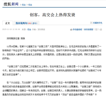 《深圳商报》/搜狐转载:创客,高交会上热得发烫“创客之都”深圳成为世界关注的焦点