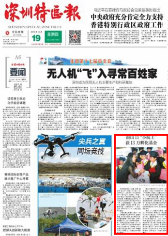 《深圳特区报》:南山11“小院士” 获13万孵化基金