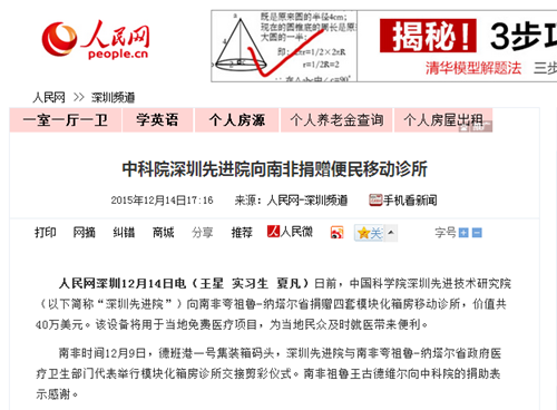 人民网:中科院深圳先进院向南非捐赠便民移动诊所