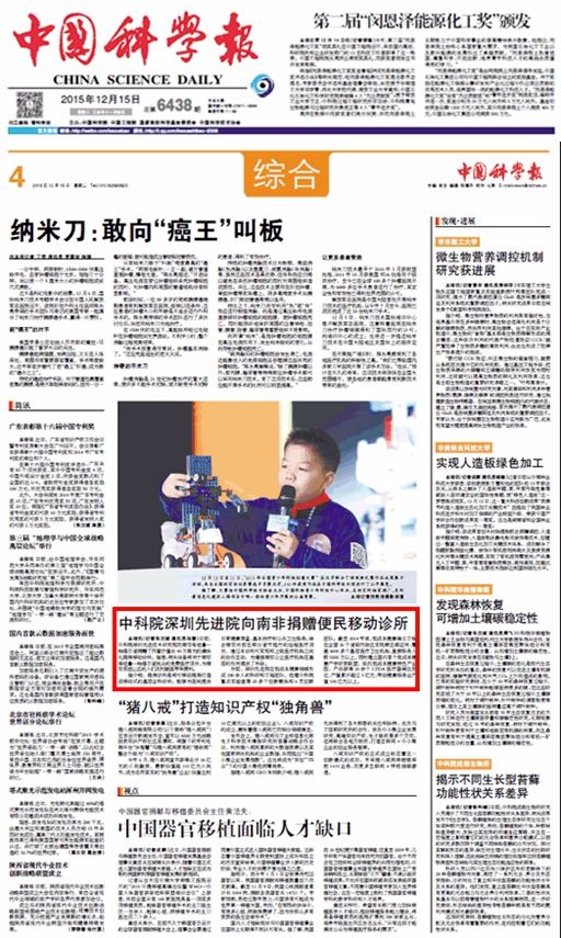 《中国科学报》:中科院深圳先进院向南非捐赠便民移动诊所