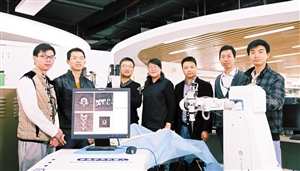 近日,深圳先进技术研究院的团队在展示手术机器人。 深圳商报记者 钟华登 通讯员 丁宁宁 摄