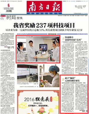 中国科学院深圳先进技术研究院(简称“深圳先进院”)、深圳市一体医疗科技有限公司、深圳迈瑞生物医疗电子股份有限公司的“基于剪切波的定量超声弹性成像技术与应用”项目获广东省技术发明奖一等奖。该项目不仅对于降低乳腺癌、肝硬化等疾病的发病率、死亡率有重大意义,也提升了我省医疗器械企业的产品竞争力。