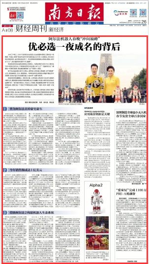 《南方日报》:阿尔法机器人春晚“冲向巅峰” 优必选一夜成名的背后