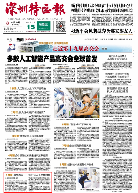 《深圳特区报》:5号馆:器官再造——3D打印人工生物卵巢