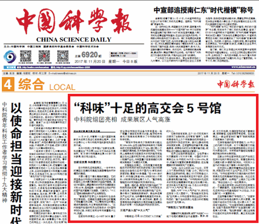 《中国科学报》:“科味”十足的高交会5号馆中科院组团亮相 成果展区人气高涨