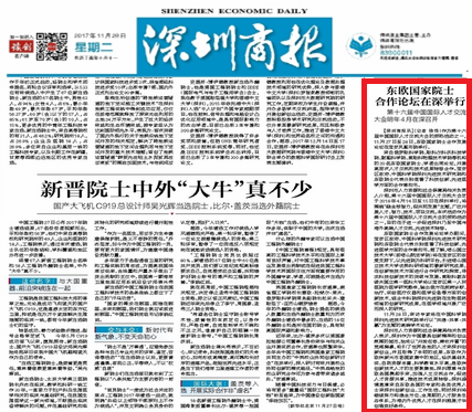 《深圳商报》:东欧国家院士合作论坛在深举行第十六届中国国际人才交流大会明年4月在深召开