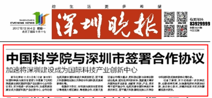 《深圳晚报》:中国科学院与深圳市签署合作协议加速将深圳建设成为国际科技产业创新中心