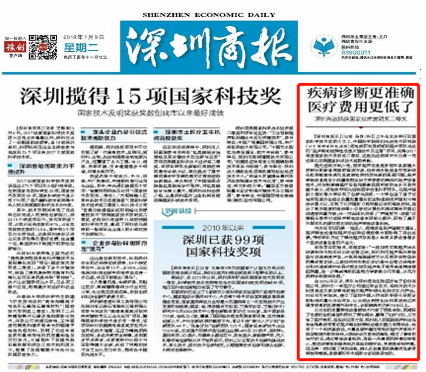 《深圳商报》:疾病诊断更准确医疗费用更低了深圳先进院获国家技术发明奖二等奖