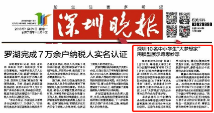 《深圳晚报》:深圳10名中小学生“大梦想家”用模型展示奇思妙想