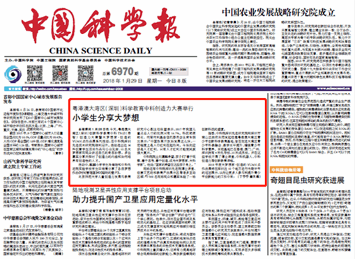 《中国科学报》:粤港澳大湾区(深圳)科学教育中科创造力大赛举行小学生分享大梦想