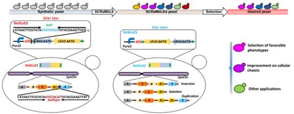 而所谓的SCRaMbLE系统,则是贯穿了此次7篇论文的一个“主角”。 该系统可以在短时间内快速地让合成的酵母染色体发生重新排列,被认为赋予了进化“超能力”。而在大自然演化中,物种的基因组序列在整个生命过程中通常需要维持相对稳定,以保证生命机器的有序进行,现如今多样的基因组其实是经历了亿万年的循序渐化。
