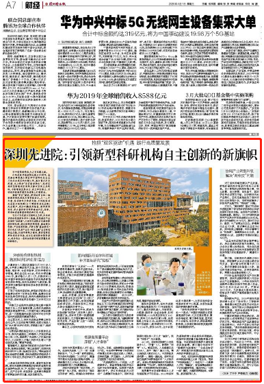 《深圳特区报》:深圳先进院:引领新型科研机构自主创新的新旗帜