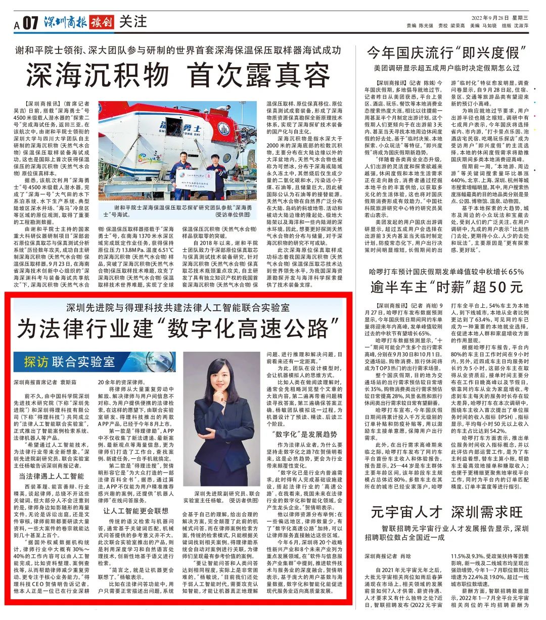“希望通过人工智能技术,为法律行业带来全新想象。”深圳先进院副研究员、联合实验室主任杨敏说。