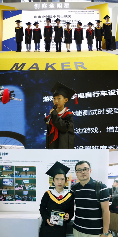 值得一提的是,育才四小刘冠东、麒麟小学王庆涵、学府中学聂小丁、太子湾学校郭敏怡、中科实验学校程伟峻等10人获得南山少年创新院2018“小院士”的称号。迄今为止,南山少年创新院共评选出41位“小院士”。这些“小院士”是通过提交创新成果(小论文、小发明、小制作、科技实践活动等)参加预赛、决赛,层层选拔出来的创意少年。