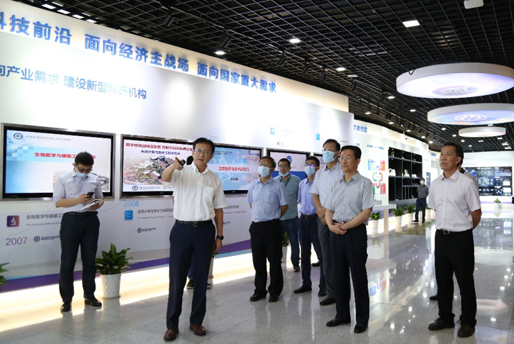 樊建平(前排左一)向杨松(前排中)介绍深圳先进院整体情况