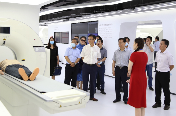 来宾一行随后前往参观国家高性能医疗器械先进制造业中心,参观与医疗健康密切相关的预防、诊断、治疗、康复领域的高端医疗设备。同时了解在疫情期间,创新中心成员单位支持武汉等地呼吸机、监护仪、CT等多种医疗设备,为共抗疫情做出努力。
