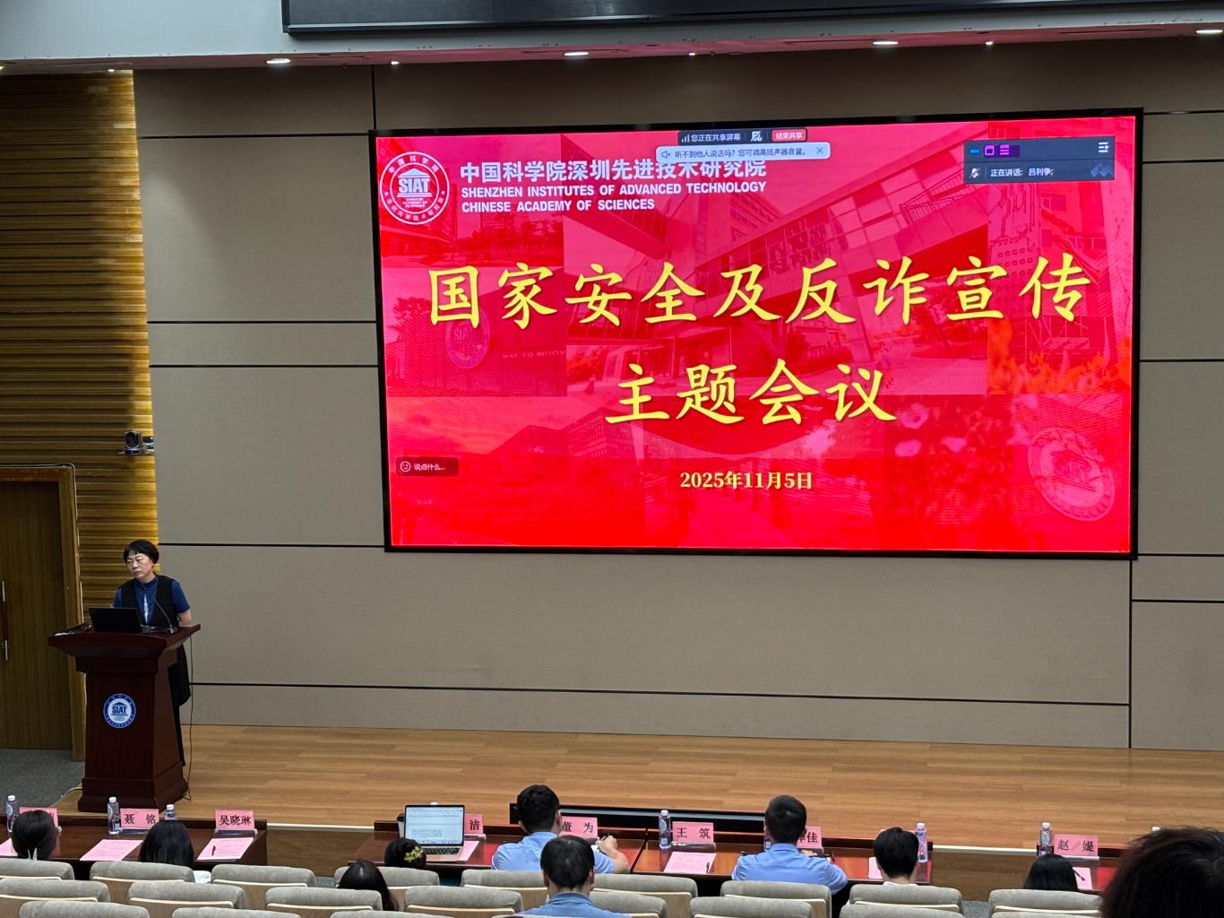 为深入贯彻落实总体国家安全观,切实增强全院人员的国家安全意识和安全防范能力,2025年11月5日(星期三)下午,院安委办举办了国家安全与反诈宣传教育主题报告会,会议特邀深圳市国家安全局专家董为副处长与塘朗派出所詹泽佳警长到场作专题报告。各研究所负责人、各安全模块负责人、各部...