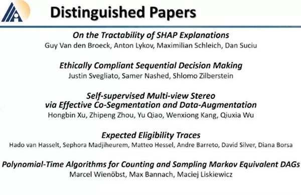 AAAI是中国计算机学会(CCF)推荐A类会议,在Google学术人工智能领域中排行第四。AAAI 2021共收到9034篇投稿论文,其中7911篇接受评审,最终1692篇被录取,录取率为21%;今年有三篇论文被授予最佳论文奖以及三篇最佳论文亚军奖、一共有六篇论文被授予杰出论文奖。