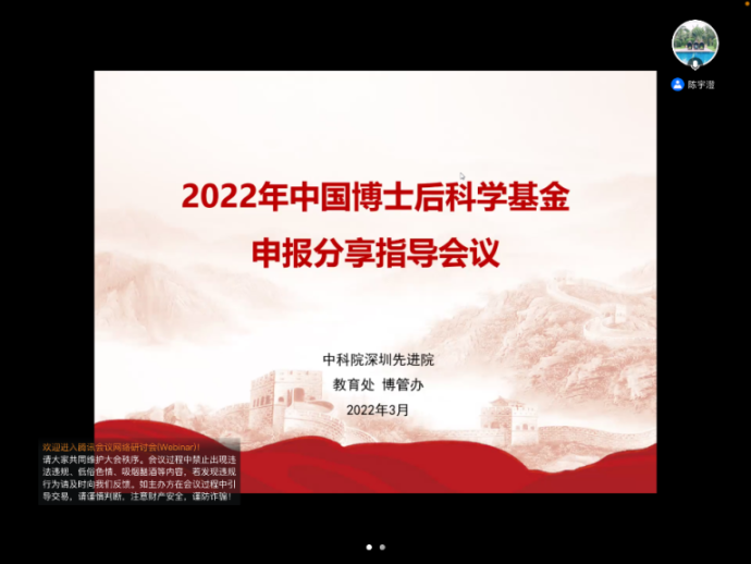 3月18日, 2022年中国博士后科学基金申报分享指导会顺利在线上举办,共吸引了150余博士后参会。