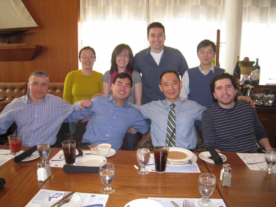 畅君雷(前排左二)与哈佛医学院的导师及实验室同事