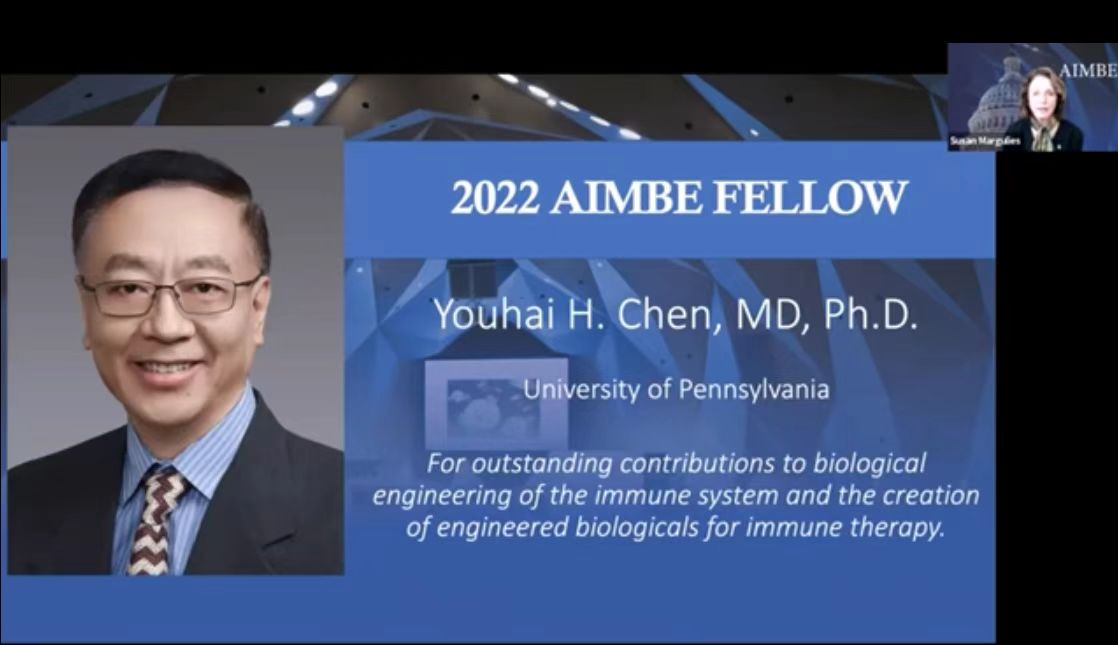 陈有海教授此次当选美国医学与生物工程院Fellow,主要是由于他在生物工程化免疫系统和免疫治疗相关工程化生物制品创建领域所做出的杰出贡献。