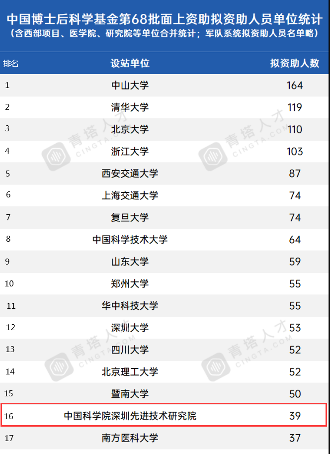 获批人数连续五年位列全国科研院所第一名 深圳先进院39人获年度中国博士后科学基金资助项目