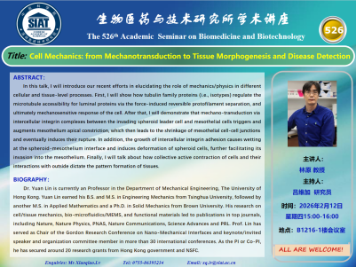 【2026年2月12日 医药所】Cell Mechanics: from Mechanotransduction to Tissue Morphogenesis and Disease Detection