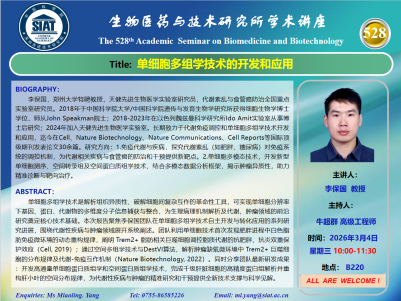 【2026年3月4日 医药所】单细胞多组学技术的开发和应用