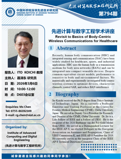 【2026年3月6日 数字所/计算机学院】Revisit to Basics of Body-Centric Wireless Communications for Healthcare