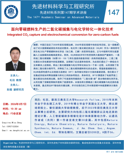 【2026年3月7日 材料所】面向零碳燃料生产的二氧化碳捕集与电化学转化一体化技术