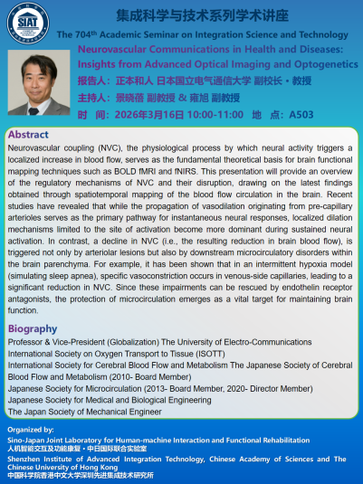【2026年3月16日 集成所】Neurovascular Communications in Health and Diseases: Insights from Advanced Optical Imaging and Optogenetics