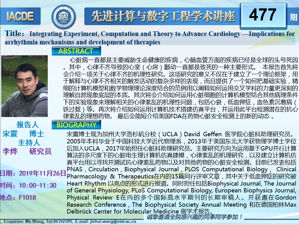 【2019年11月26日 数字所】Integrating Experiment, Computation and Theory to Advance Cardiology —Implications for arrhythmia mechanisms and development of therapies