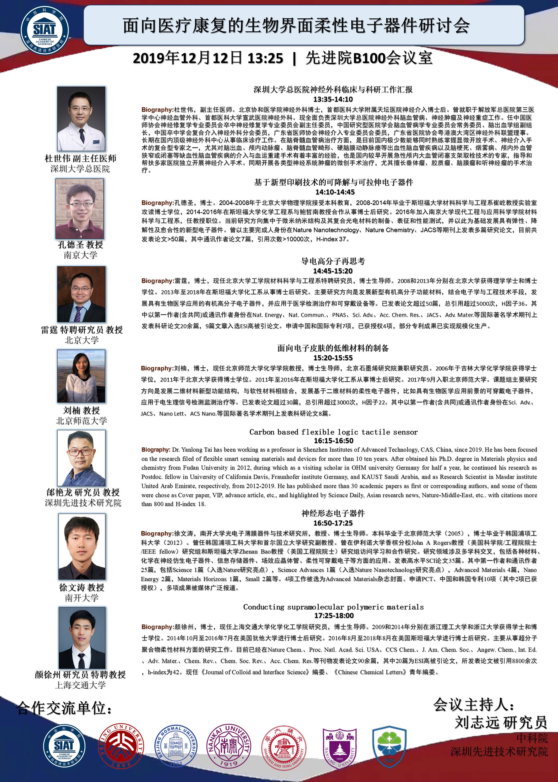【2019年12月12日 集成所】面向医疗康复的生物界面柔性电子器件研讨会