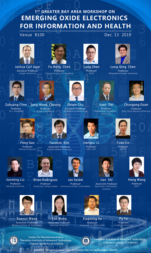 医工所纳米调控与生物力学研究中心将于2019年12月13日在B100会议室举行首届新兴信息与健康氧化物电子器件大湾区研讨会(The first greater bay area workshop on emerging oxide electronics for information and health)
