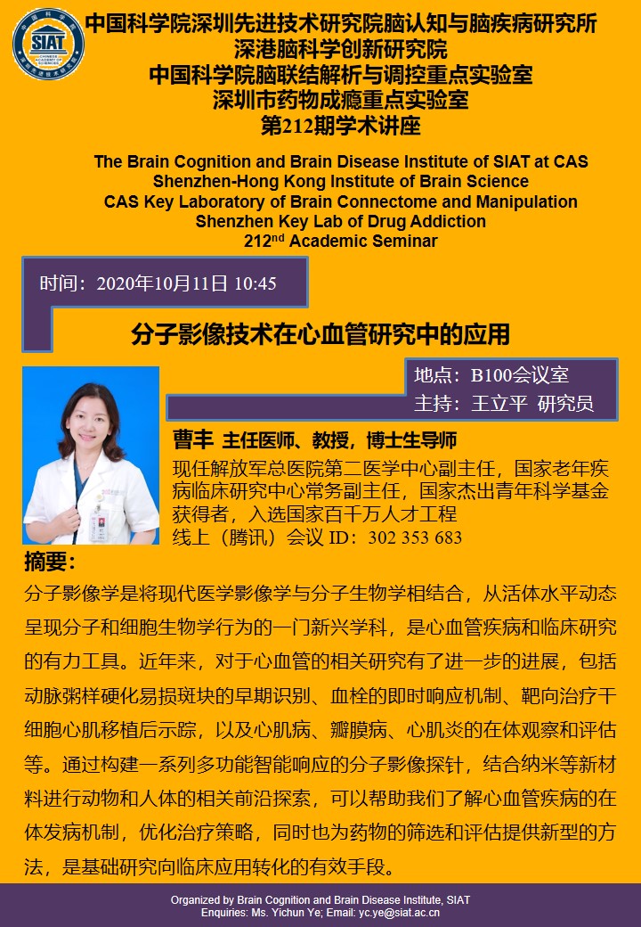 【2020年10月11日 脑所】分子影像技术在心血管研究中的应用