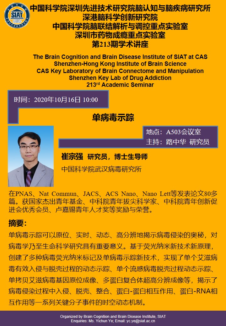 大家好!脑认知与脑疾病研究所将于2020年10月16日10:00,在A503会议室举办第二百一十三期学术讲座,