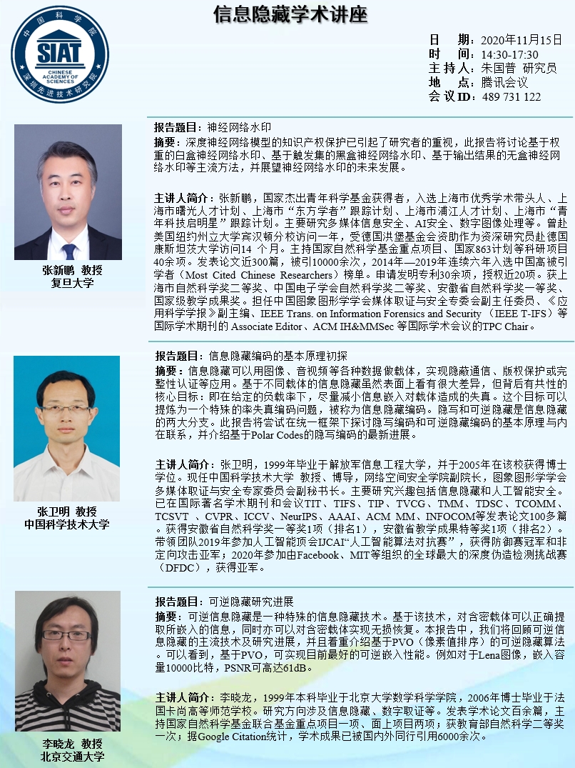 【2020年11月15日 数字所】信息隐藏学术讲座