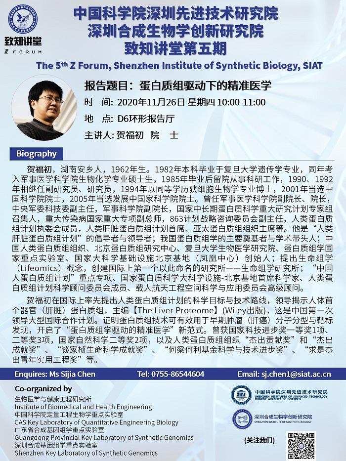 本次讲座邀请了 中国科学院院士 贺福初 带来题为“蛋白质组驱动下的精准医学”的报告。